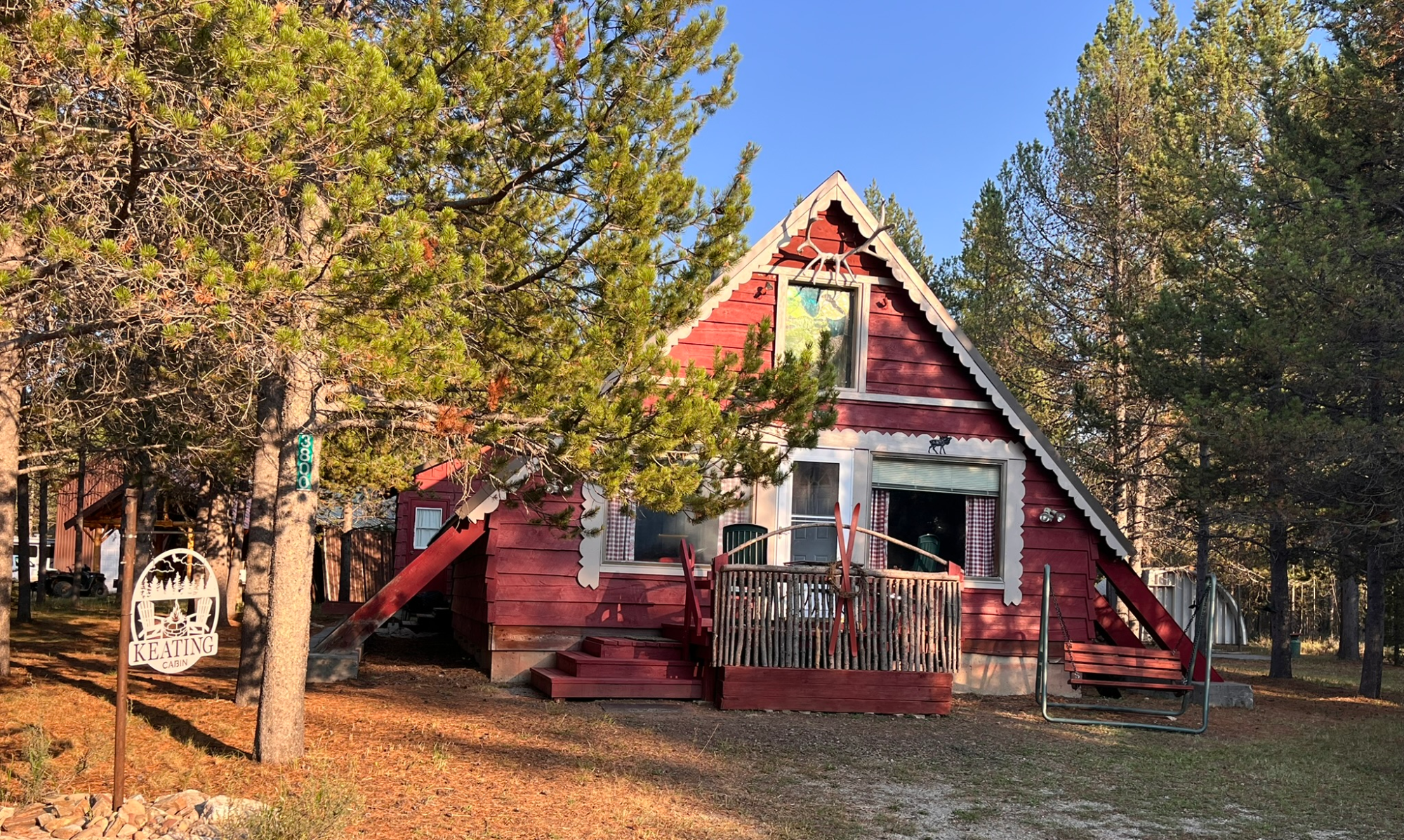 Tucked deep in the pines and watched over by old owls, Keating Cabin is more than a destination—it’s a feeling. It’s the hush of morning coffee on the porch, the giggles from board games around the table, the aerial ballet of bats at dusk, the quiet hope of spotting a mama moose and her calf, and the peaceful comfort of naps beneath sun-dappled branches.